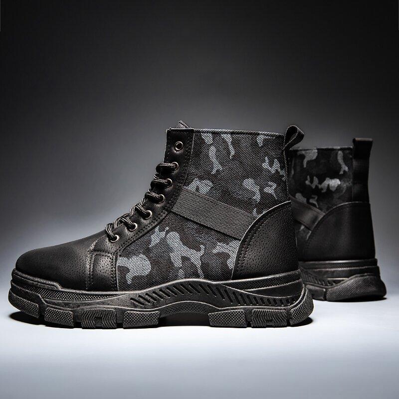 Одинарные хлопковые ботинки Мартин, высокие, мужские, нескользящая толстая подошва, уличные ботинки цвета ревеня, камуфляжная обувь