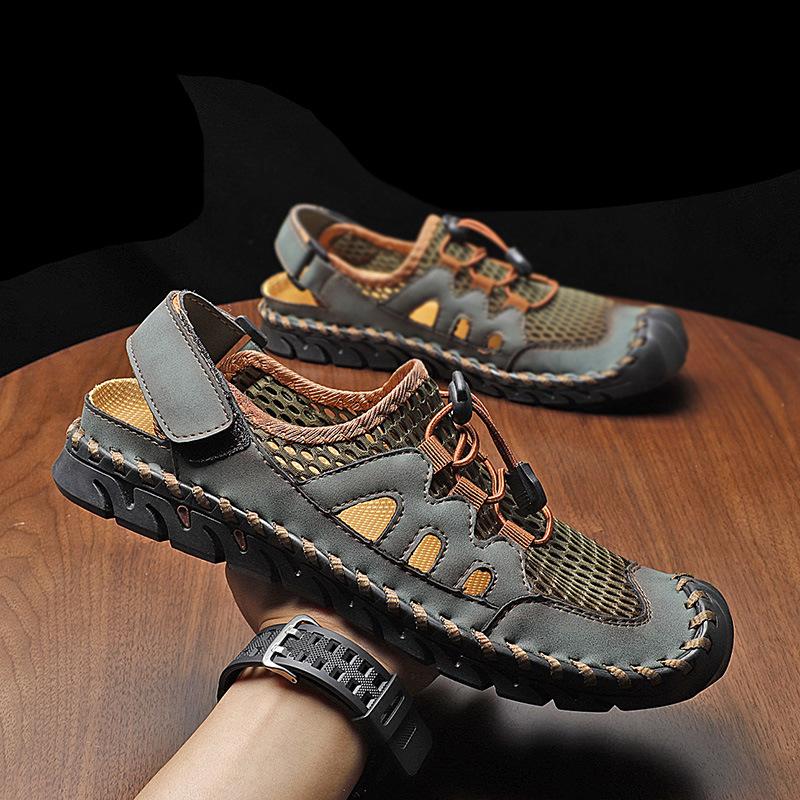 Летняя новая ручной работы повседневная прохладная кожаная обувь большого размера мужская уличная сетчатая перфорированная пляжная обувь
