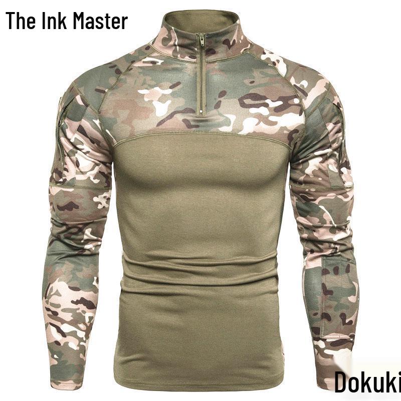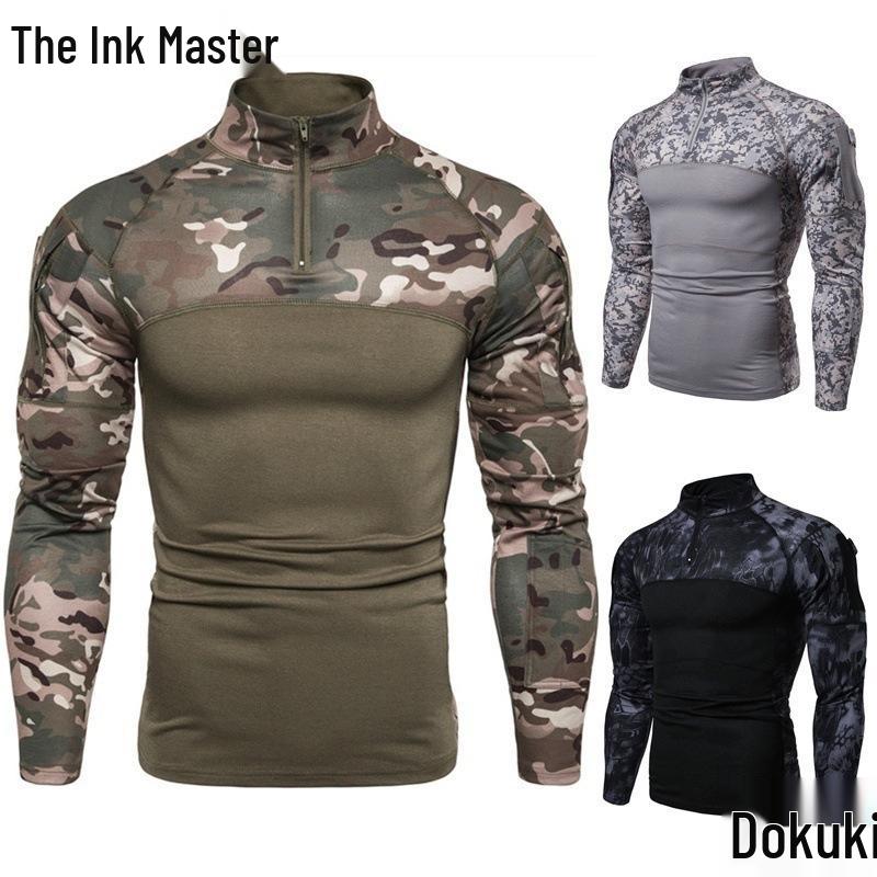 Оцените идеальное сочетание стиля и функциональности с этой мужской камуфляжной футболкой с длинным рукавом в европейском военном стиле для фитнеса.. Эта рубашка, изготовленная из высококачественного полиэфирного волокна, разработана для долговечности и комфорта во время интенсивных занятий.. Он отличается ярким военным узором, который добавляет смелый штрих к вашей тренировочной или повседневной одежде.. Воротник-стойка создает элегантный и современный образ, что делает его универсальным дополнением к вашему гардеробу.. Собираетесь ли вы в спортзал или исследуете природу, эта футболка гарантирует, что вы будете делать это с уверенностью и стилем.
