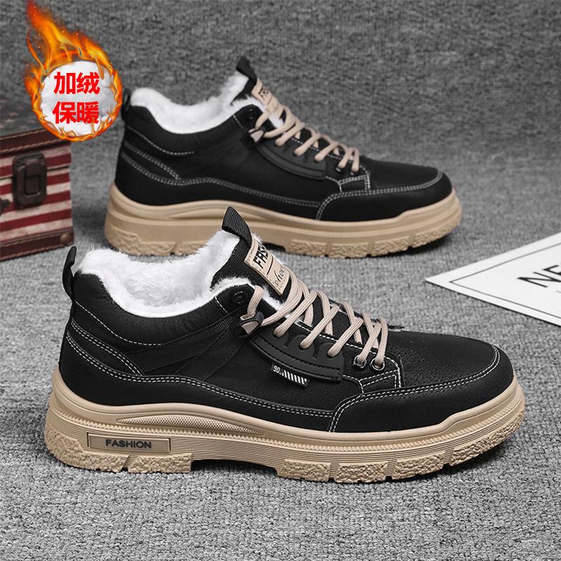 Зимние бархатные мужские утепленные хлопковые ботинки, мужские ботинки Мартин на толстой подошве, уличные сноубутсы