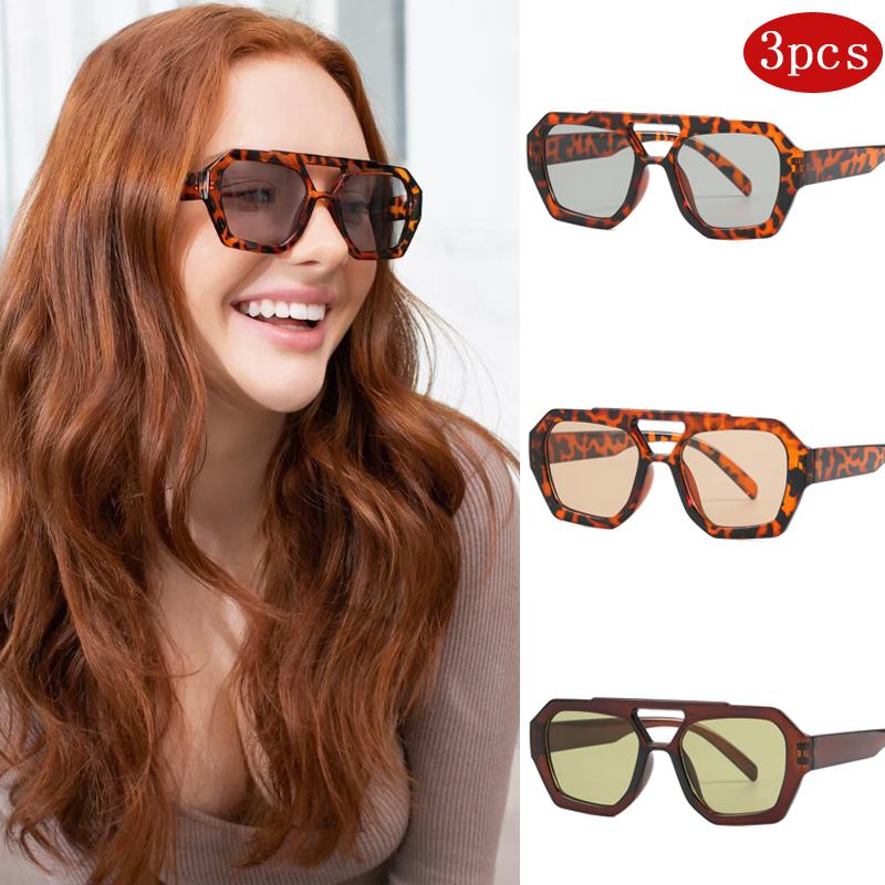 3pcs Women Double Beam Irregular Sunglasses Simple Fashion Leopard Pattern Design Glasses High Quality Outdoor Sunscreen Glasses
