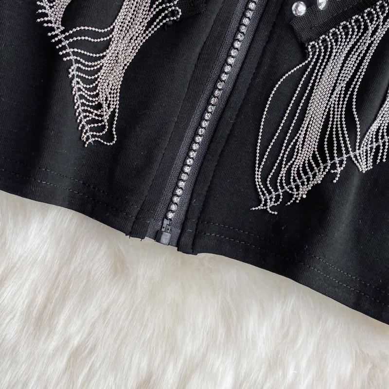 RUGOD Осенний свободный универсальный бронзовый кардиган с кисточками, женское пальто в иностранном стиле с воротником-стойкой, тонкий короткий топ