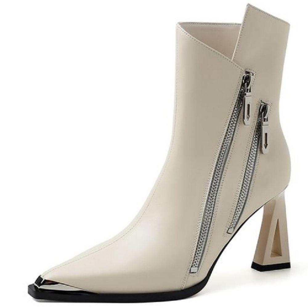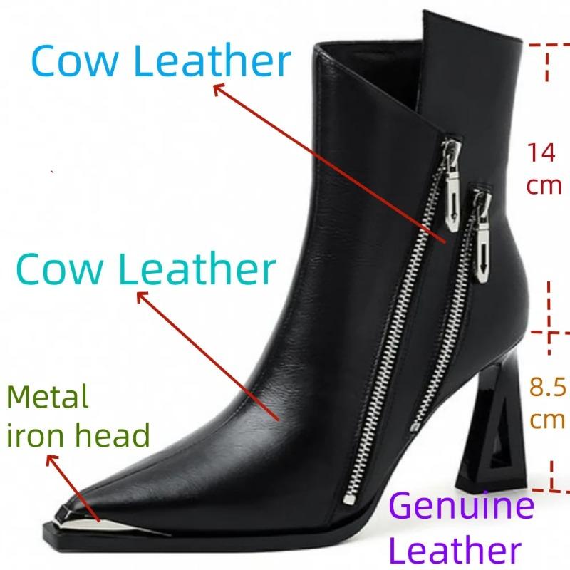 НОВЫЕ Женские Ботильоны на Высоком Каблуке из Натуральной Кожи Ручной Работы Дизайн с Двумя Молниями Модные Туфли с Вырезом 33-40