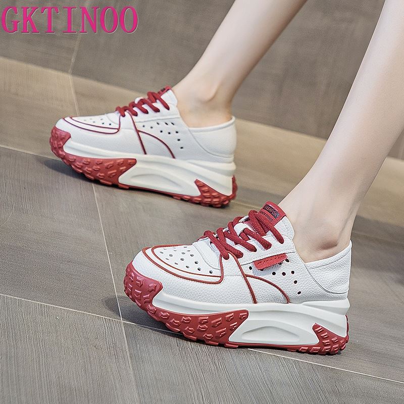 GKTINOO Сандалии из натуральной кожи Летний бренд Удобные на шнуровке Платформа Вулканизированные Женские Массивные Кроссовки Полые Летние Лоферы Обувь