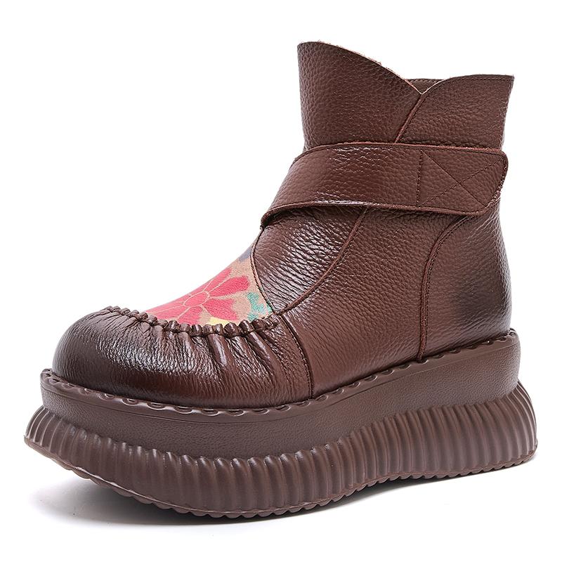 GKTINOO Ботильоны ручной работы на платформе Женские из натуральной коровьей кожи Короткие ботинки Круглый носок Увеличивающие рост Толстая подошва Женская обувь
