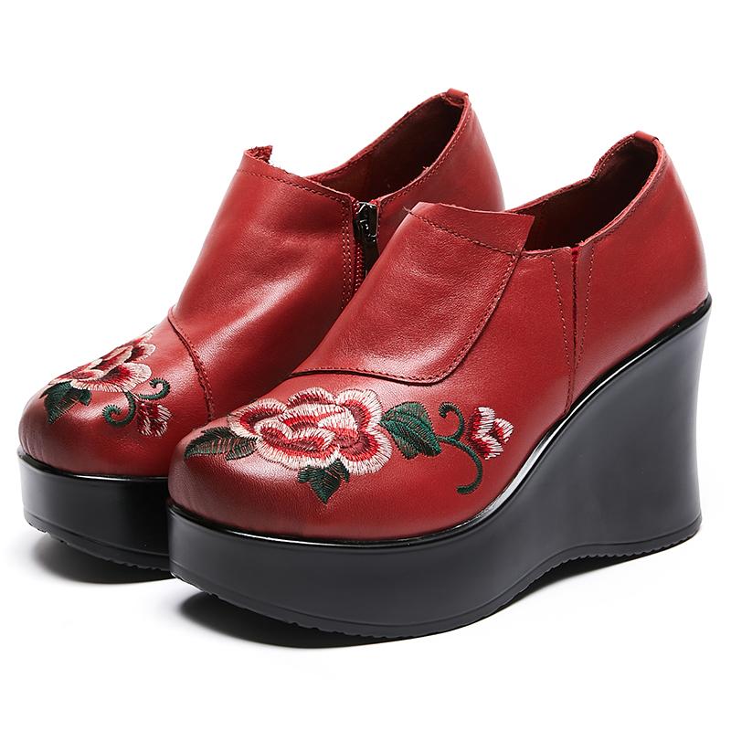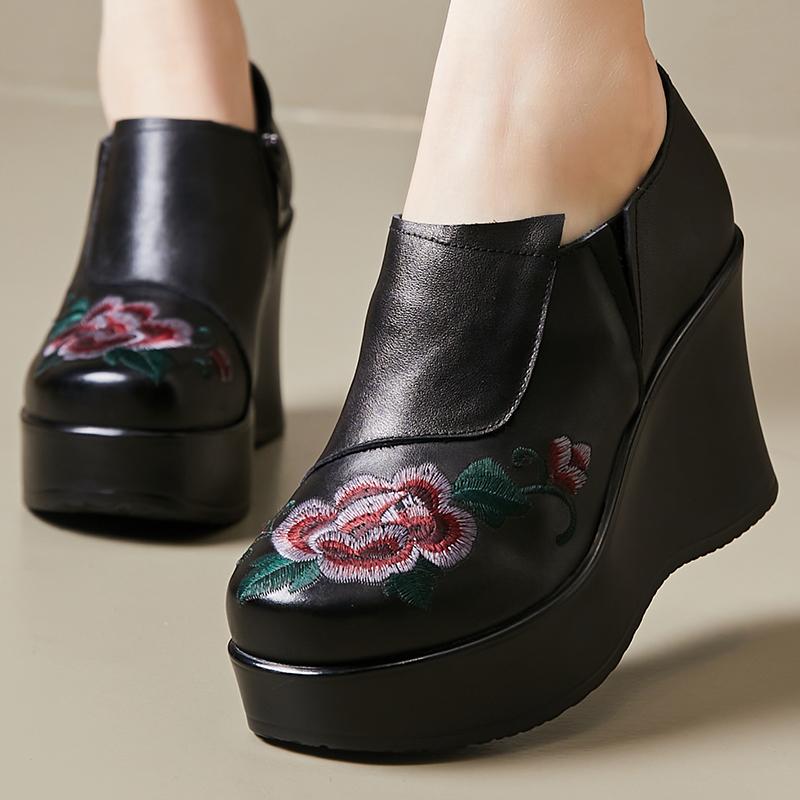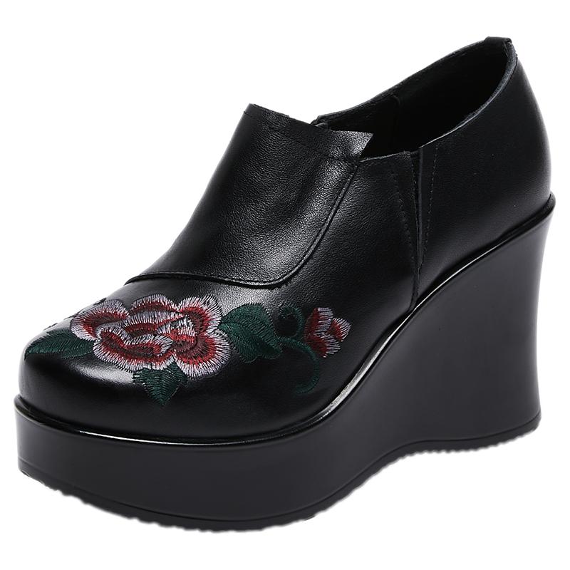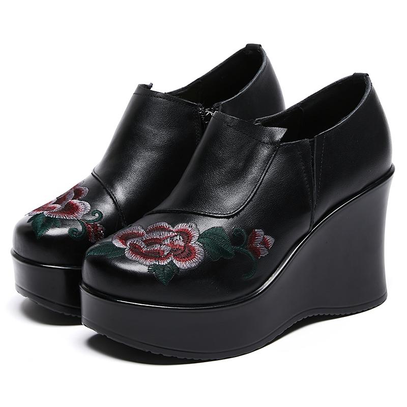 GKTINOO Туфли женские ручной работы в стиле ретро, с круглым носком, на танкетке с увеличением высоты 9 см, повседневные, из натуральной кожи, туфли-лоферы на платформе