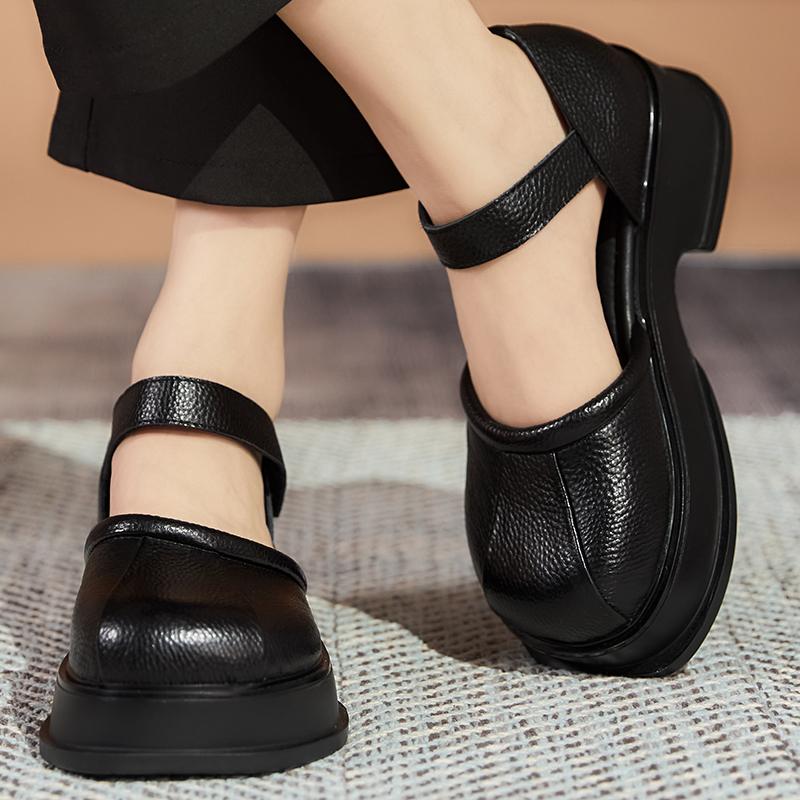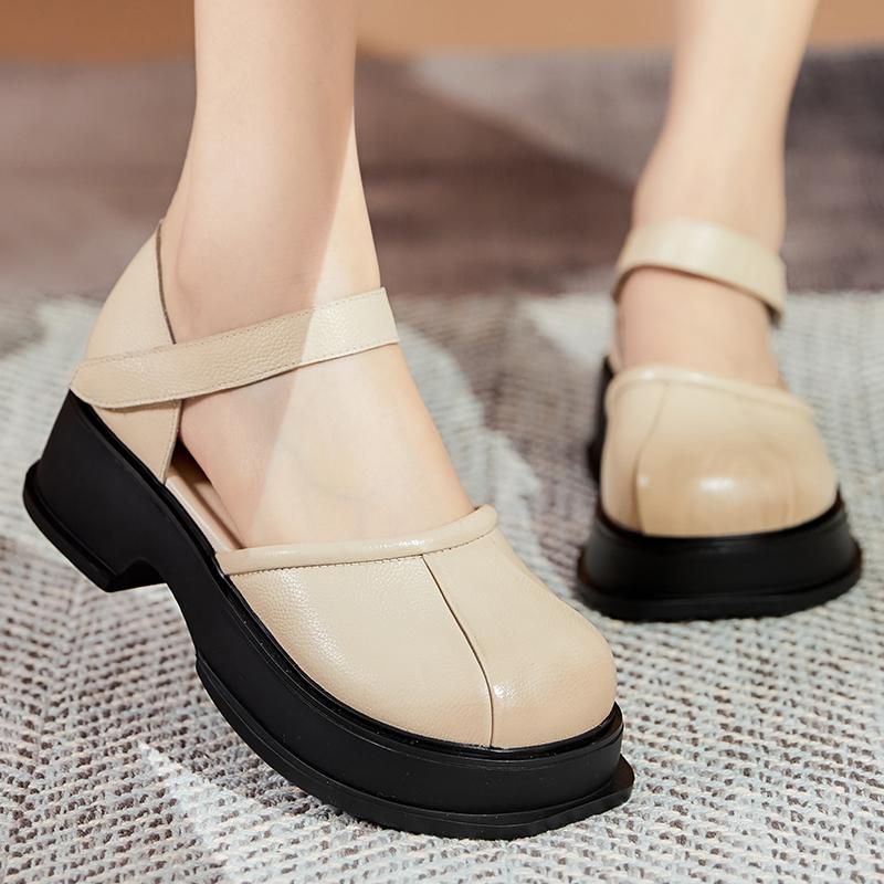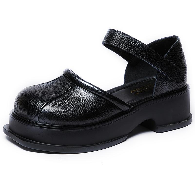 GKTINOO Сандалии на платформе Женские на липучке С круглым носком Натуральная кожа Римские Повседневные На толстой подошве Летняя женская обувь