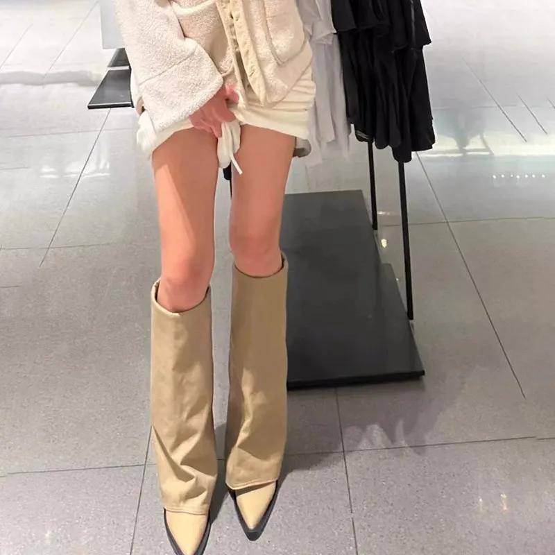 Высокие сапоги из натуральной кожи для женщин, высокие каблуки с заостренным носком, женские модные ботинки челси, новые туфли-лодочки Mujer Snow Gladiator Botas