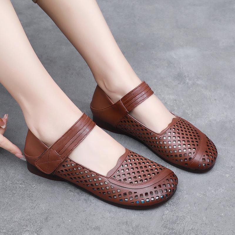 GKTINOO 2025 Лето Натуральная Кожа Полые Туфли Женские Сандалии Повседневные Мама Плоская Мягкая Подошва Удобные Сандалии Нескользящие