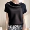 Женская футболка из шелкового атласа с французским воротником и короткими рукавами, весна/лето 2024, больших размеров