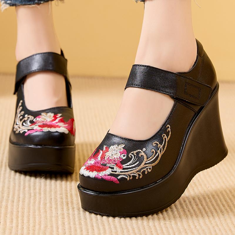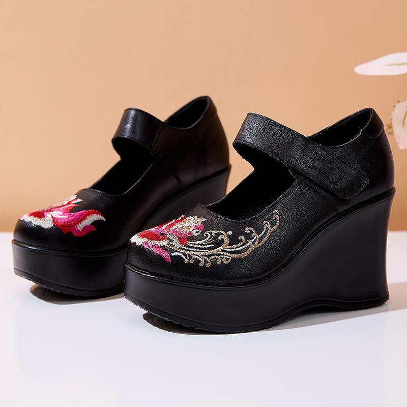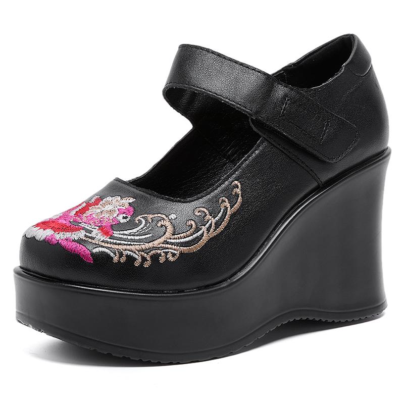 GKTINOO Туфли женские ручной работы в стиле ретро, с круглым носком, на танкетке с увеличением высоты 9 см, повседневные, из натуральной кожи, туфли-лоферы на платформе