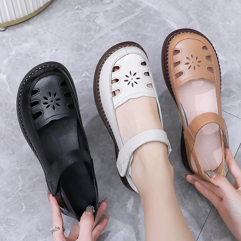 GKTINOO 2025 Лето Натуральная Кожа Полые Туфли Женские Сандалии Повседневные Мама Плоская Мягкая Подошва Удобные Кроссовки Нескользящие