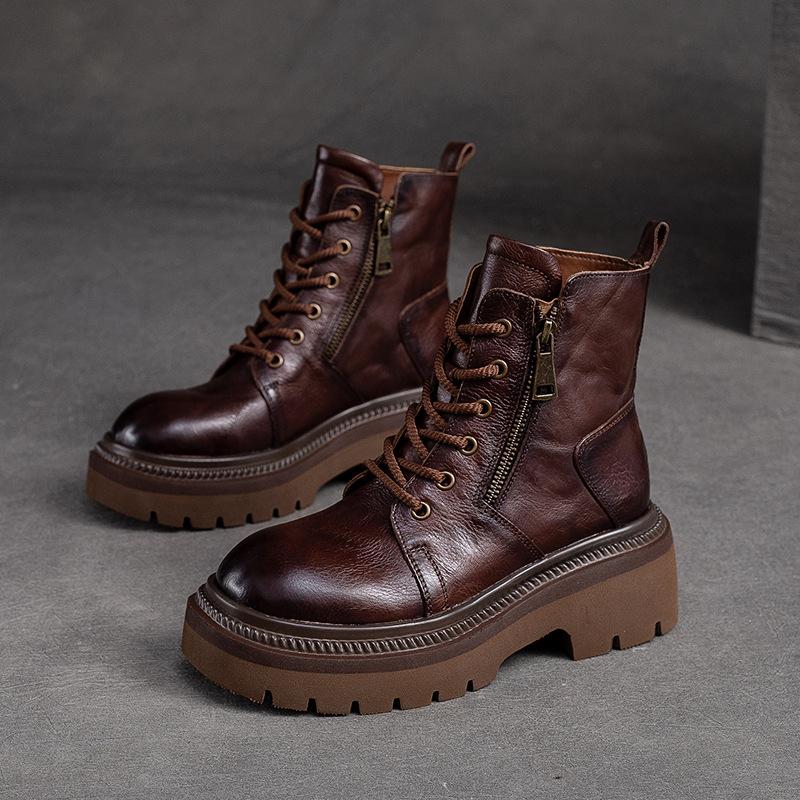 GKTINOO 2025 Качество Коровья Кожа Женская Обувь Осень Зима Квадратный Средний Каблук Ботильоны Шнуровка Молния Женские Туфли Размер 35-40