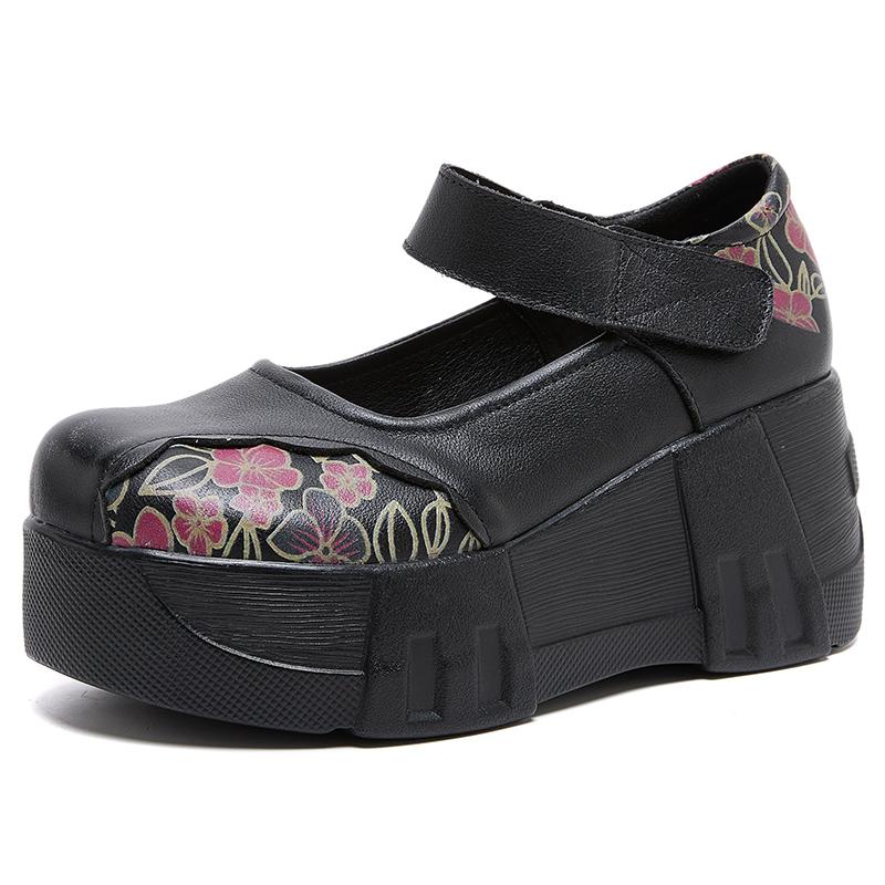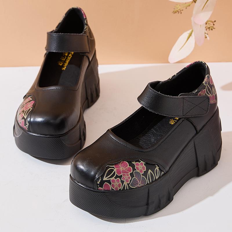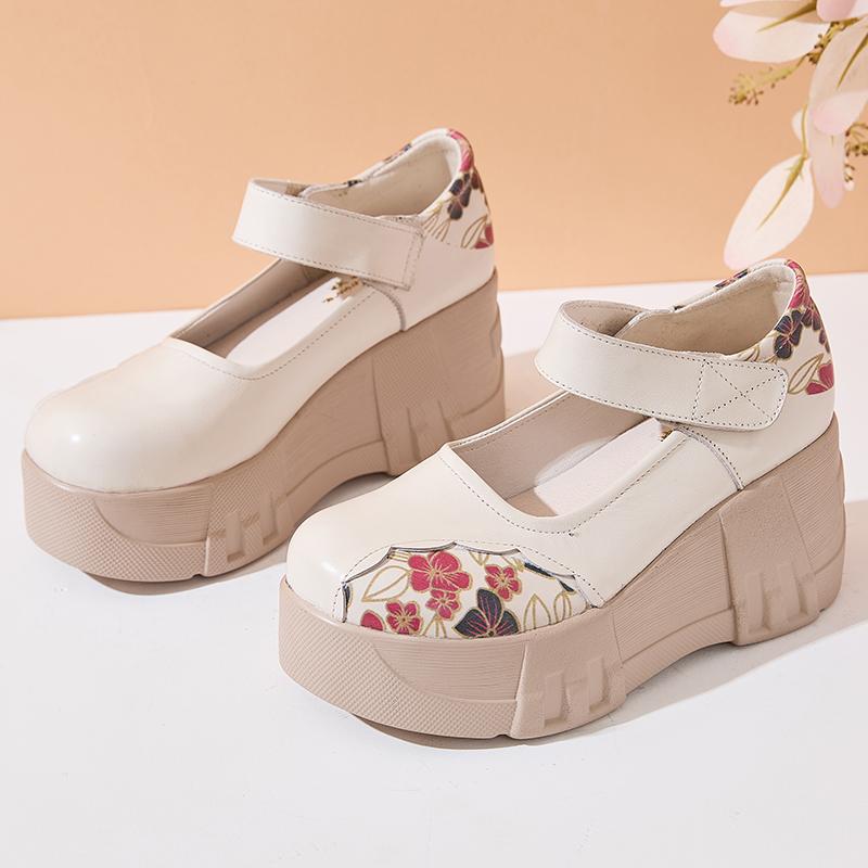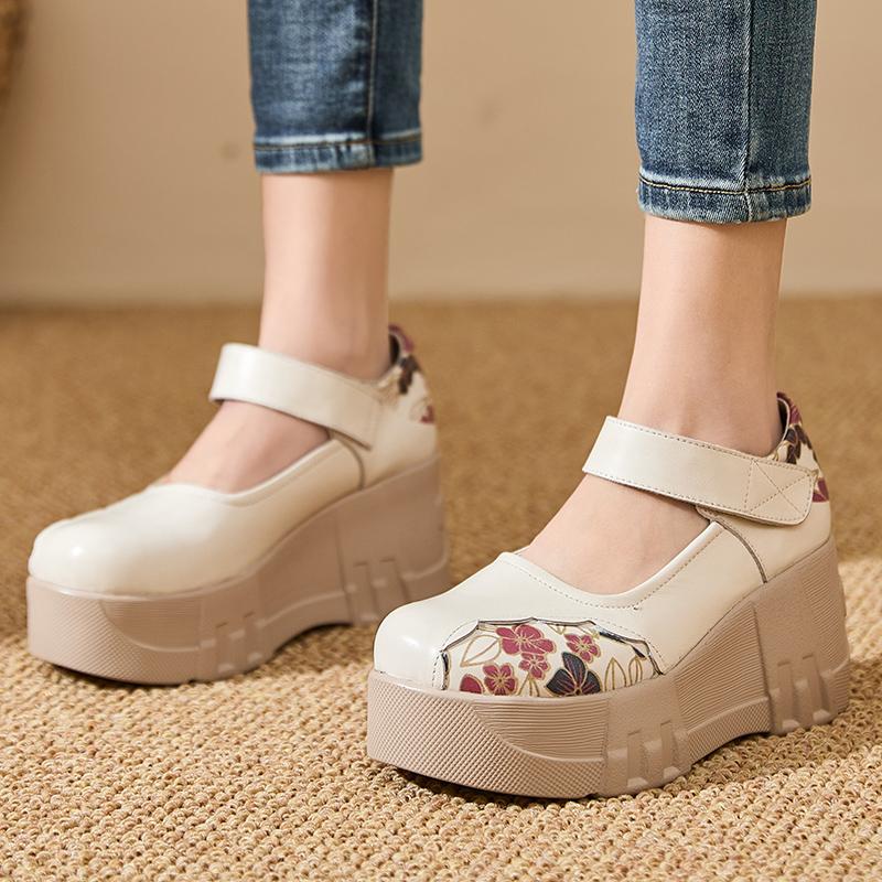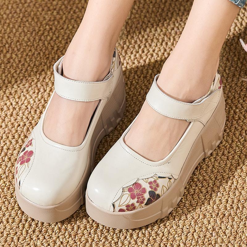 GKTINOO Туфли на толстой подошве, увеличивающие рост, 2025 Весна Новая Натуральная кожа Липучка Универсальные Ретро Женские туфли на платформе