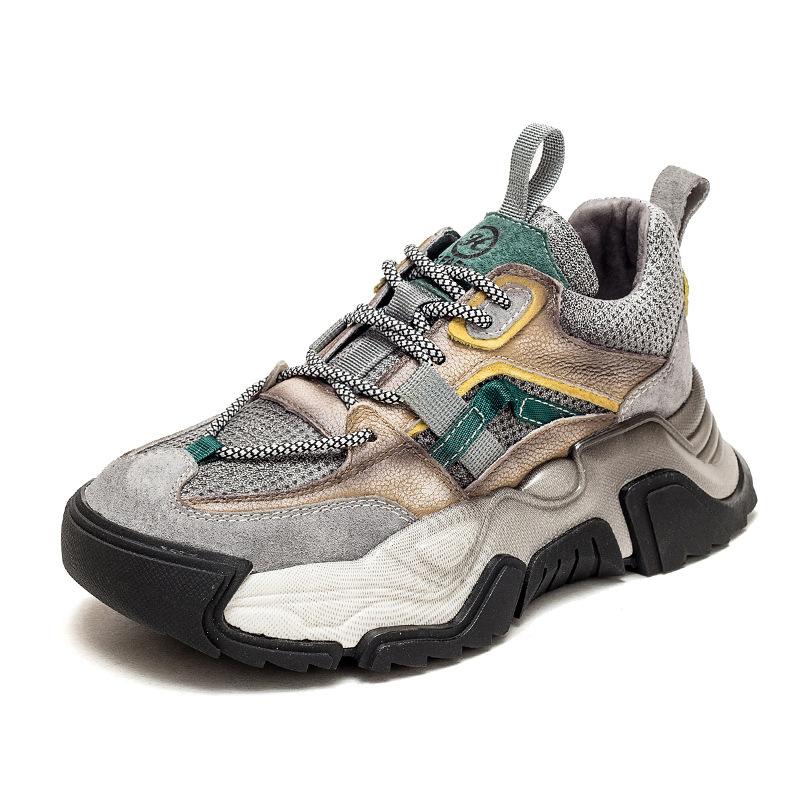 GKTINOO Женские кроссовки на платформе из натуральной кожи смешанных цветов с круглым носком на шнуровке на толстой подошве, женская обувь ручной работы