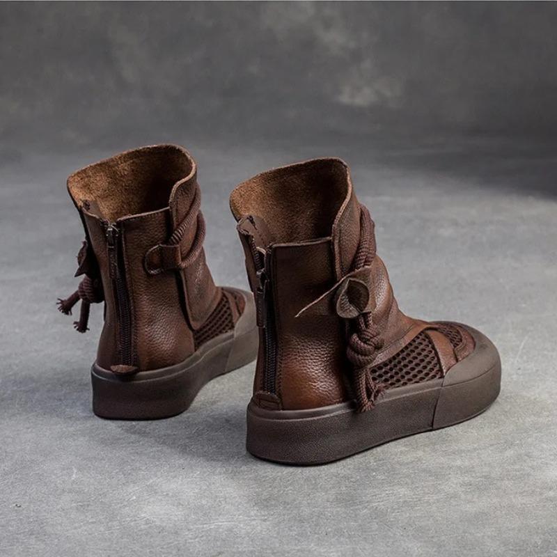 2025 Новые Ретро Летние Женские Полые Дышащие Ботильоны из Натуральной Кожи на Задней Молнии Римские Сандалии Толстая Подошва Женская Обувь