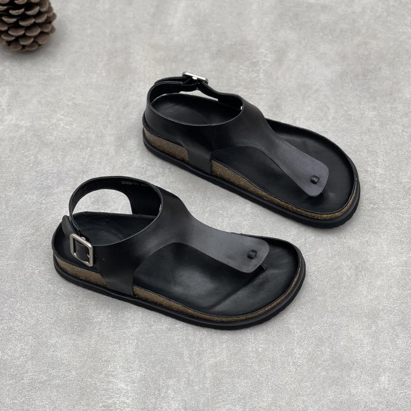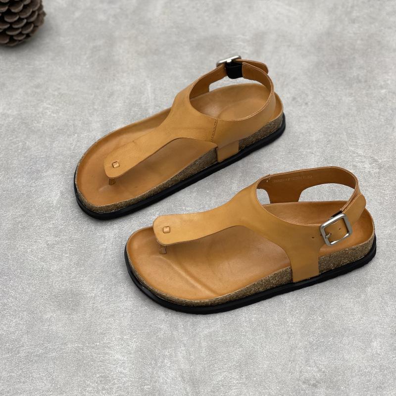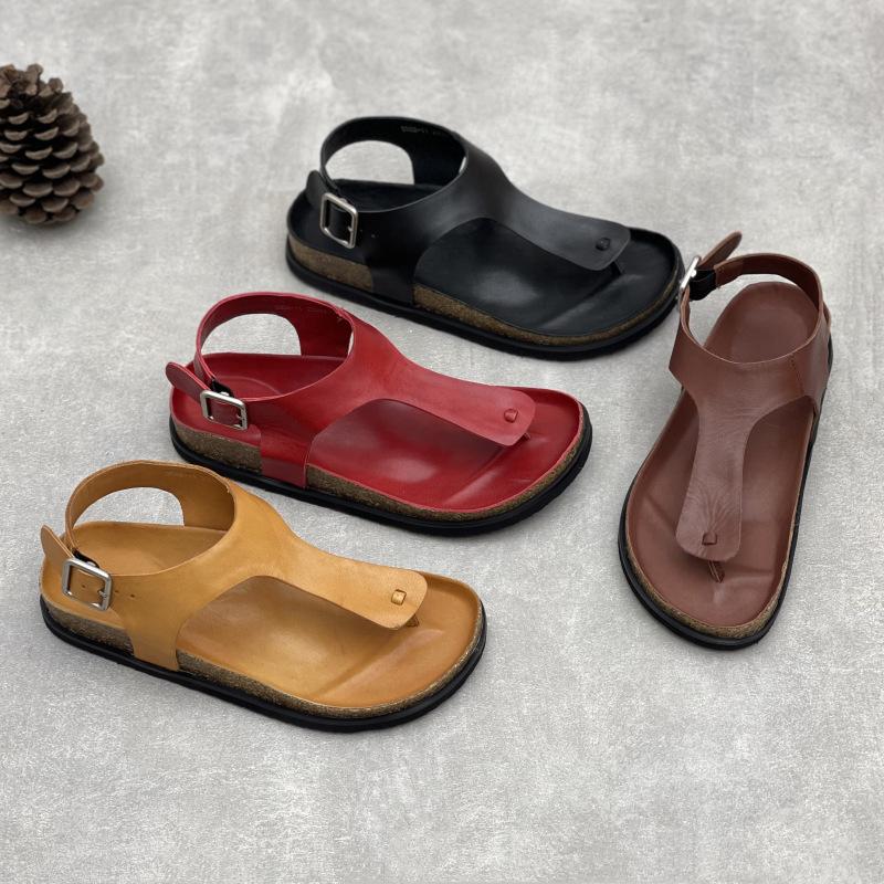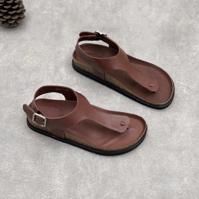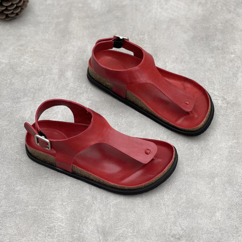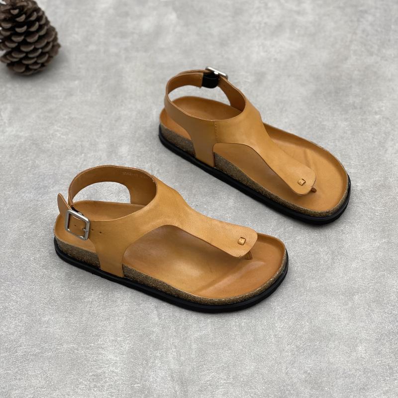 GKTINOO Летние женские сандалии ручной работы из натуральной кожи, плоская подошва, 2025, новый однотонный цвет, квадратная пряжка, простые мягкие туфли из коровьей кожи