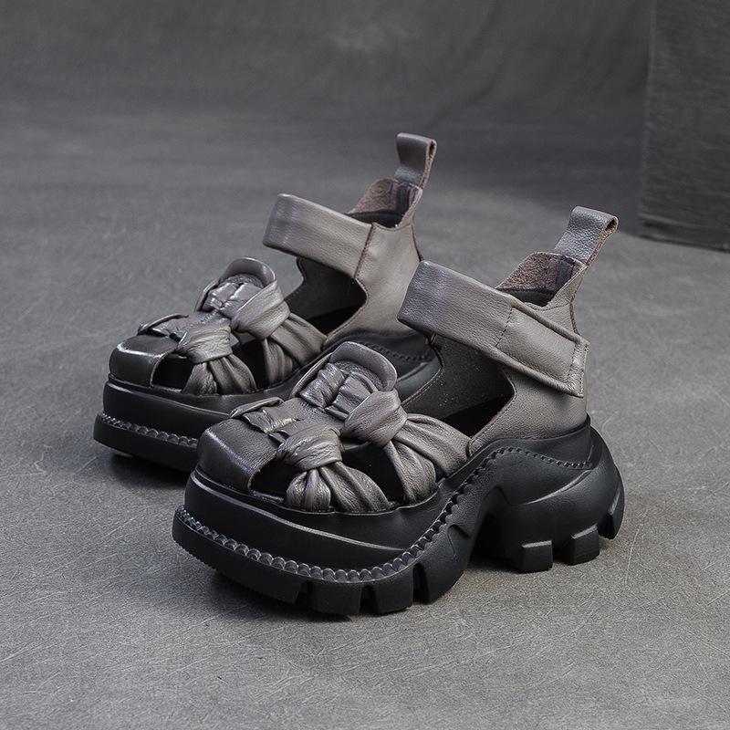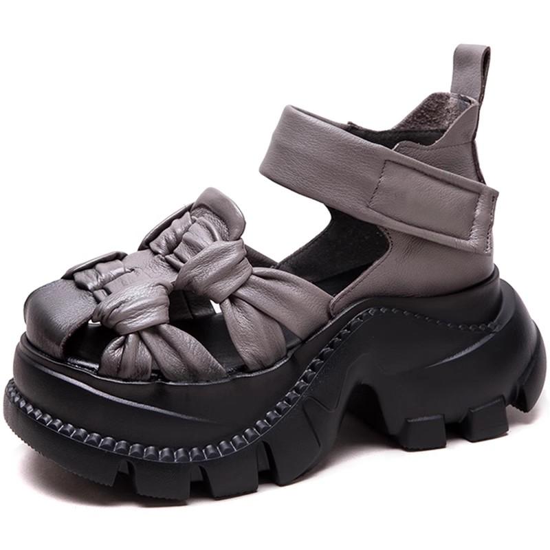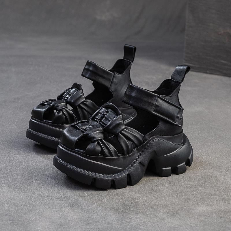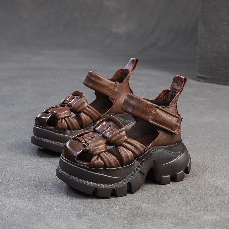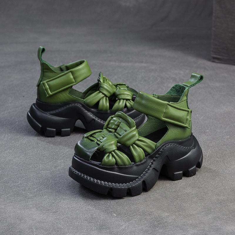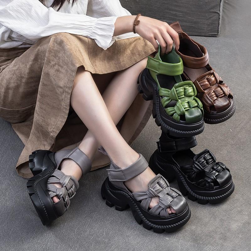 CKTINOO 2025 Лето Новые Босоножки на Платформе из Натуральной Кожи Удобное Плетение Дышащие Ретро Женская Обувь