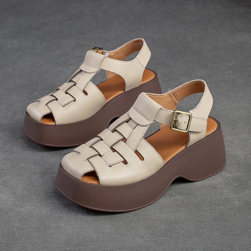 GKTINOO 2024 Новые сандалии из натуральной кожи с перфорацией, женская обувь, сандалии на платформе, танкетке, летняя обувь, женские повседневные сандалии