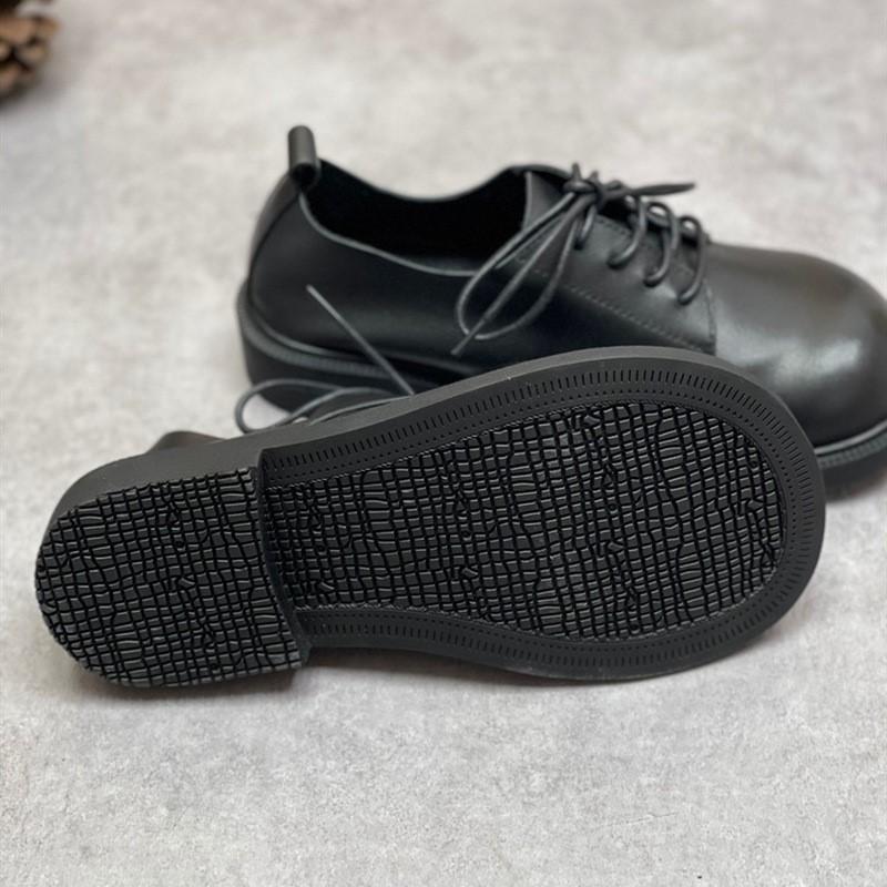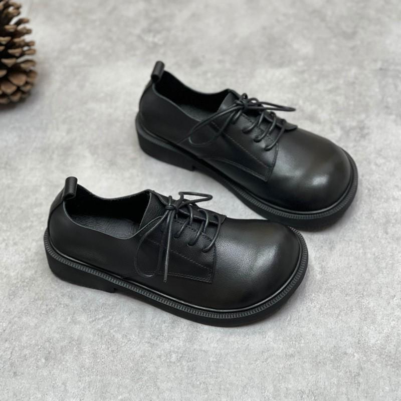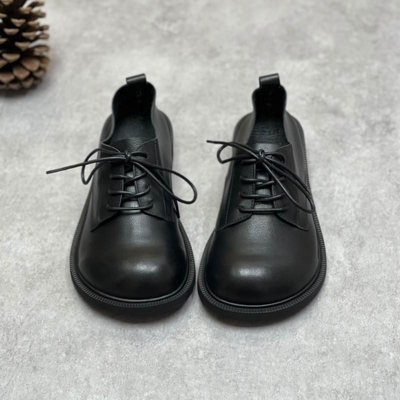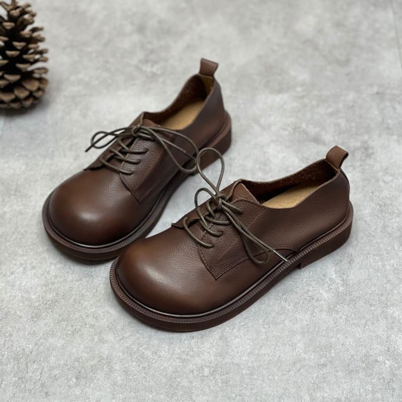 GKTINOO Женские повседневные туфли-лодочки из натуральной кожи 2025 Новые Ретро Коровья кожа Мягкая подошва Круглый носок Однотонные Туфли на шнуровке