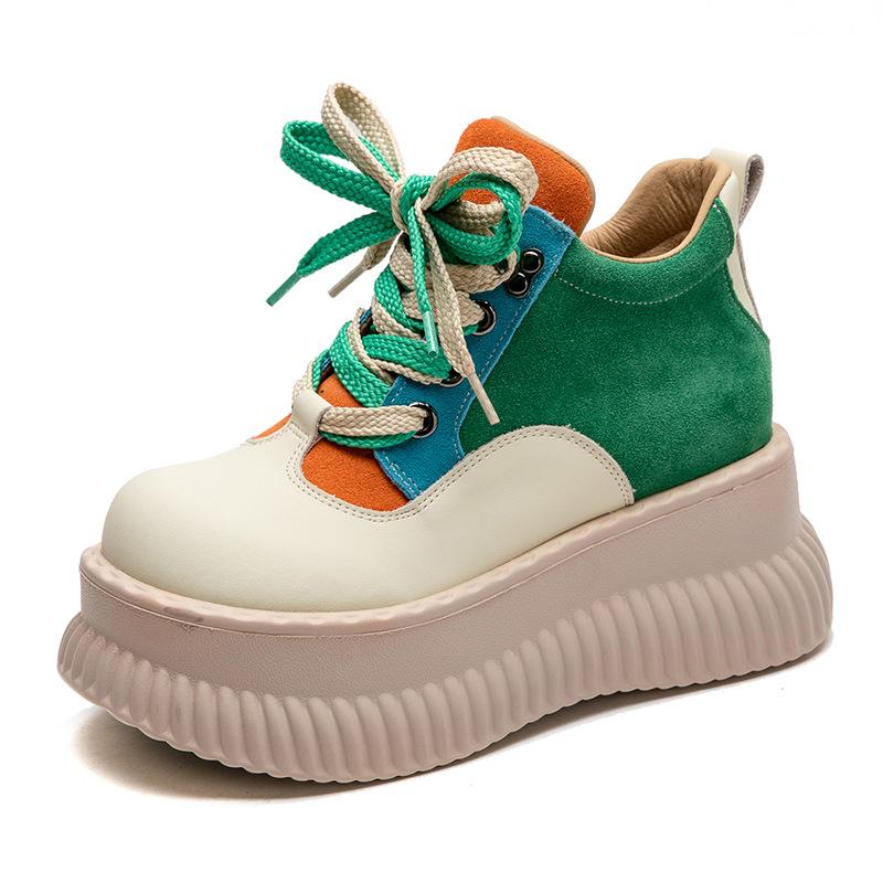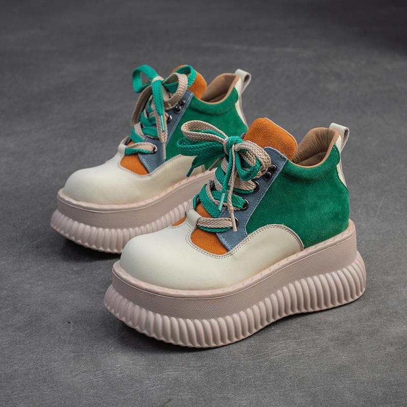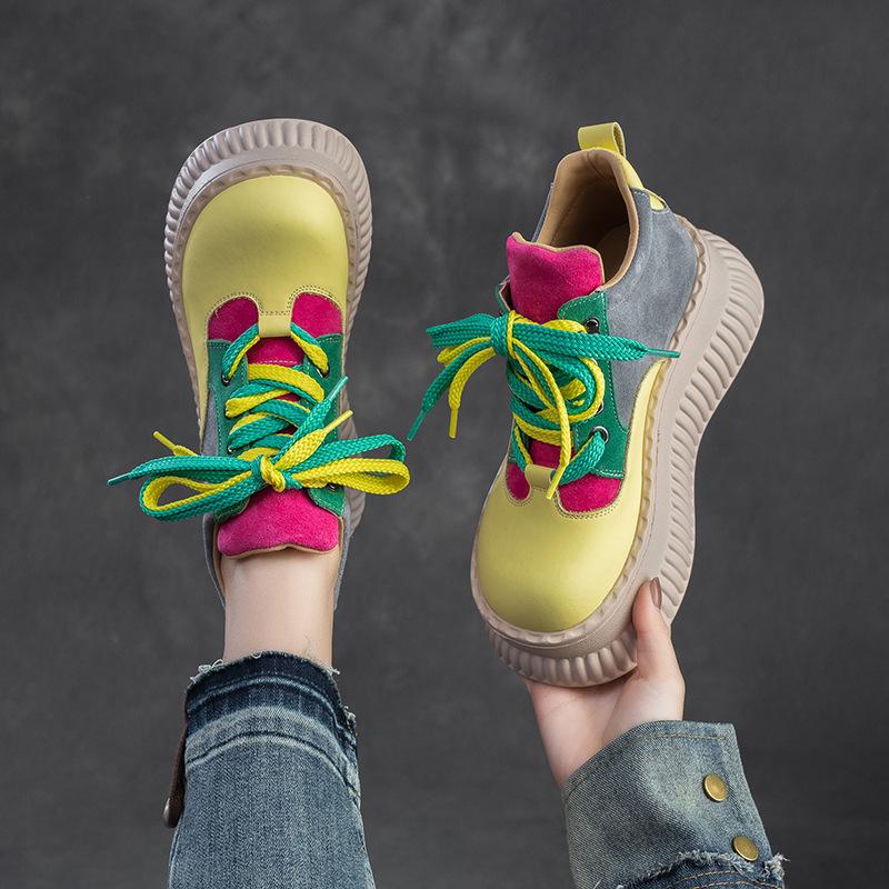 GKTINOO 2025 Весна Новые Туфли на плоской платформе из натуральной кожи Смешанные цвета Обувь на толстой подошве для повседневной носки Кроссовки Женская обувь