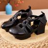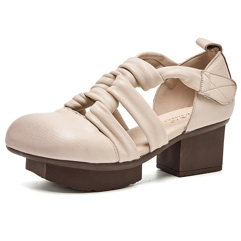 GKTINOO 2025 Новые женские сандалии Летние сандалии-гладиаторы из плетеной натуральной кожи в стиле ретро с круглым носком и повседневным высоким каблуком — купить товар онлайн с бесплатной доставкой по всему миру!