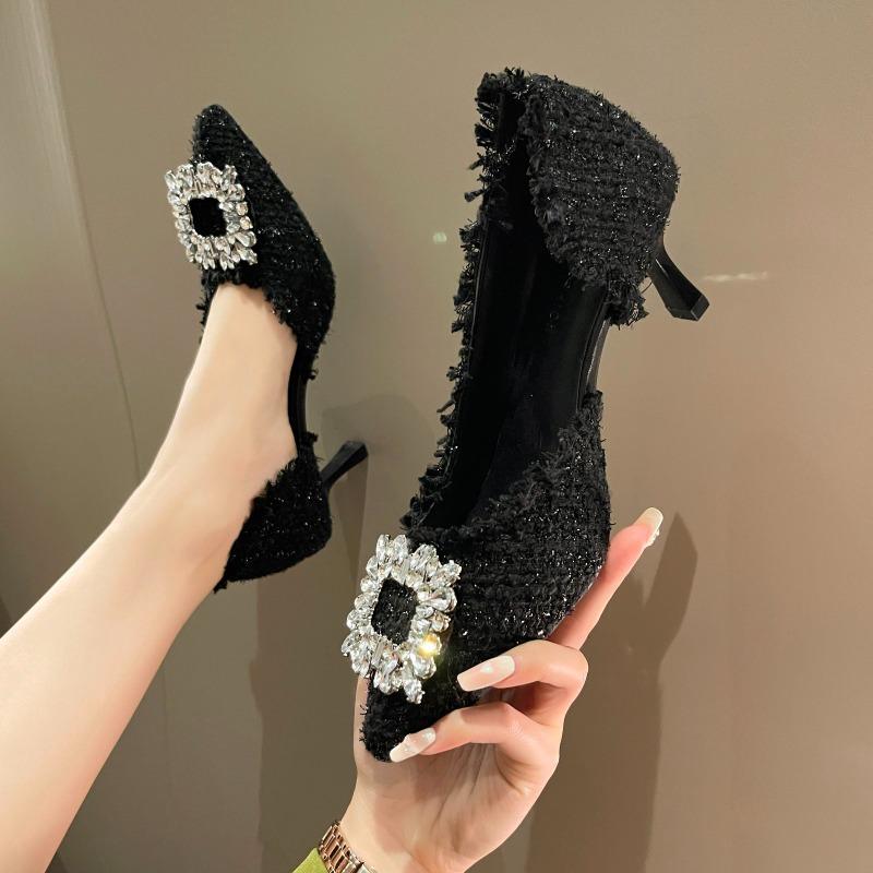 Дизайн Кристалл Женские Туфли-лодочки Весна Острый Носок Женские Мелкие Высокий Каблук Элегантные Женские Рабочие Туфли для Платья Zapatos De Mujer