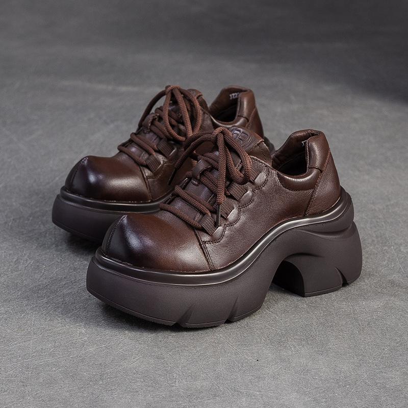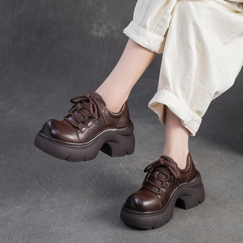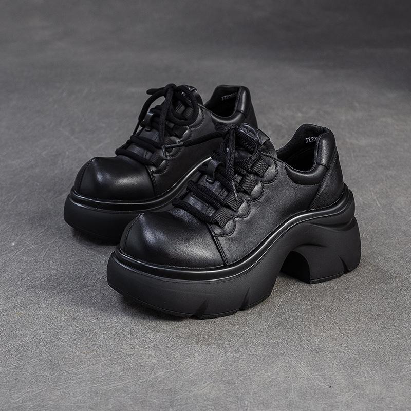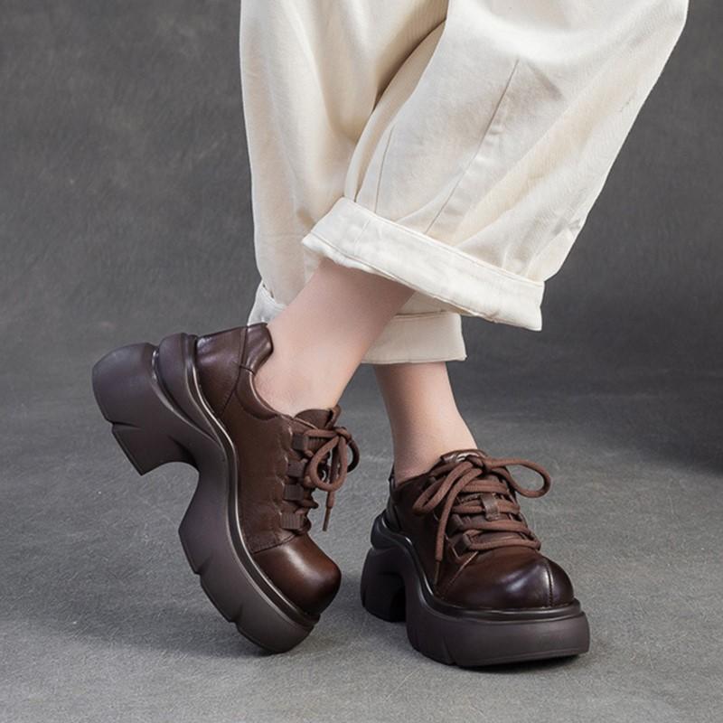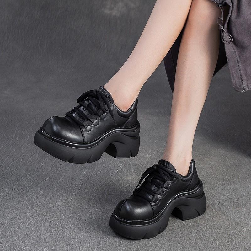 GKTINOO 2025 Осень Новые Туфли-лодочки из Натуральной Кожи на Толстой Подошве и Высоком Каблуке, Универсальные Ретро с Круглым Носком на Шнуровке, Женская Обувь на Платформе