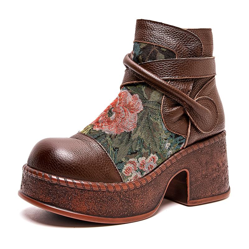 GKTINOO Женские мотоботы из натуральной кожи 2025 Новые на молнии с круглым носком Женская обувь Цветы Ручная работа Ретро Ботильоны на платформе — купить товар онлайн с бесплатной доставкой по всему миру!