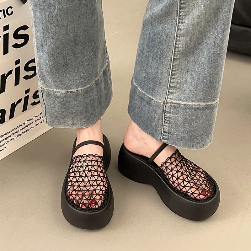 Mesh Women Platform Slippers High Heels Summer Slides Heeled Sandals 2025 New Brand Pumps Dress Designer Lady