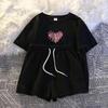 Женский модный летний спортивный костюм из двух частей - футболка с коротким рукавом свободного кроя и шорты для повседневной носки