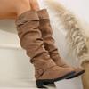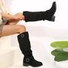Ботильоны в западном стиле с плиссированным плоским дном, женские осенне-зимние ботинки на толстом каблуке, длинные сапоги, кожаный ремень с пряжкой, хлопковая подкладка, ботильоны