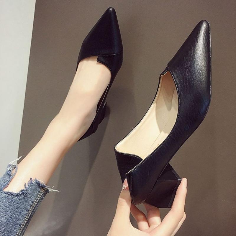 Лето 2025 Новые Остроносые Женские Одинарные Туфли на Среднем Каблуке Женская Мода Высокий Каблук Туфли Женские с Мелким Вырезом