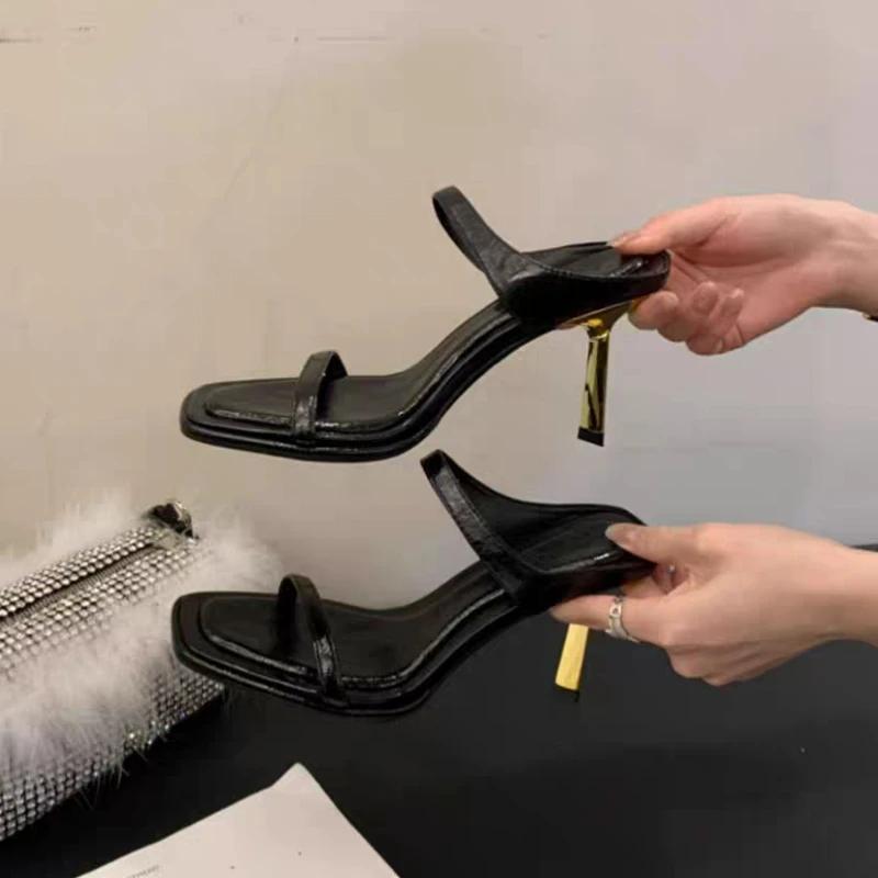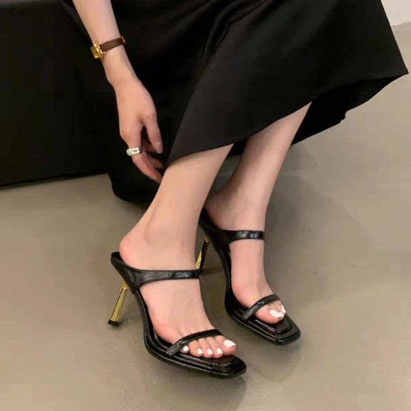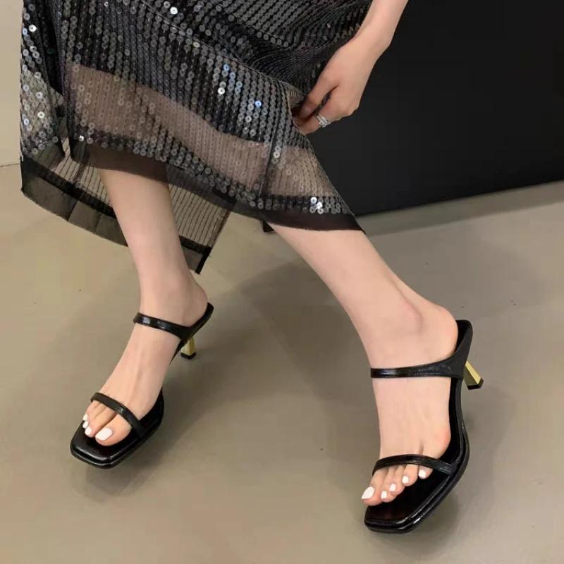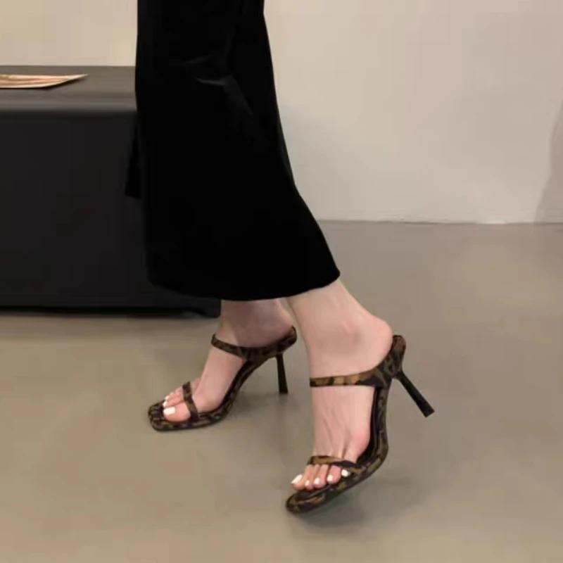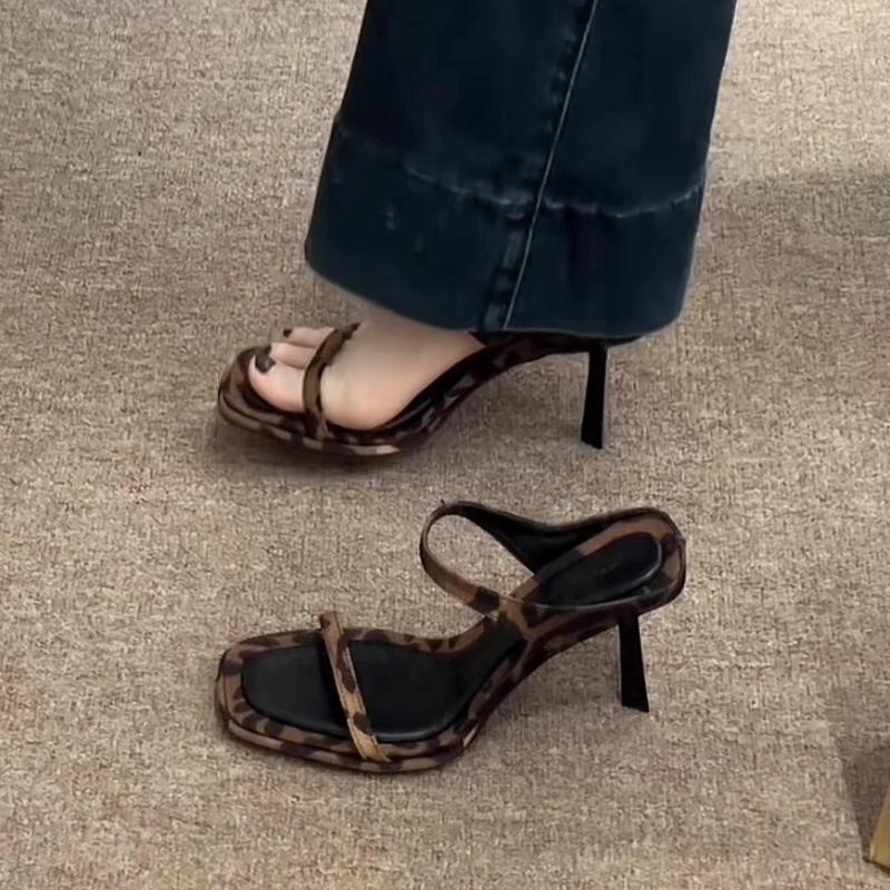 Женские тапочки, летние, новые, на высоком каблуке, с квадратным леопардовым принтом, простые, модные, удобные, полые тапочки с увеличенным носком
