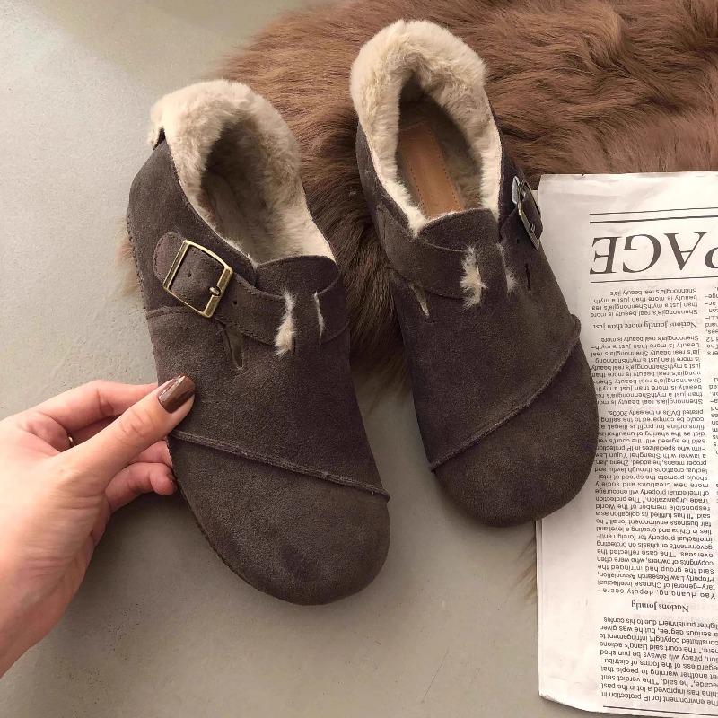 Осень и Зима Новая Мода Кожа Женщины Бархат Ретро Туфли-Бобы Женщины Хлопковые Туфли Женские Балетки Тренд Короткий Плюш Femme
