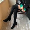 Сексуальные высокие сапоги женские 2024 зима новая мода ботфорты теплые боты замшевые шнуровка туфли-лодочки носки туфли на высоком каблуке сапоги