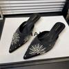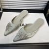 Роскошные хрустальные женские туфли-мюли с острым носком, босоножки на каблуке, сексуальные шлепанцы, летний новый тренд 2025, туфли для вечеринок с ремешком на пятке, zapatillas