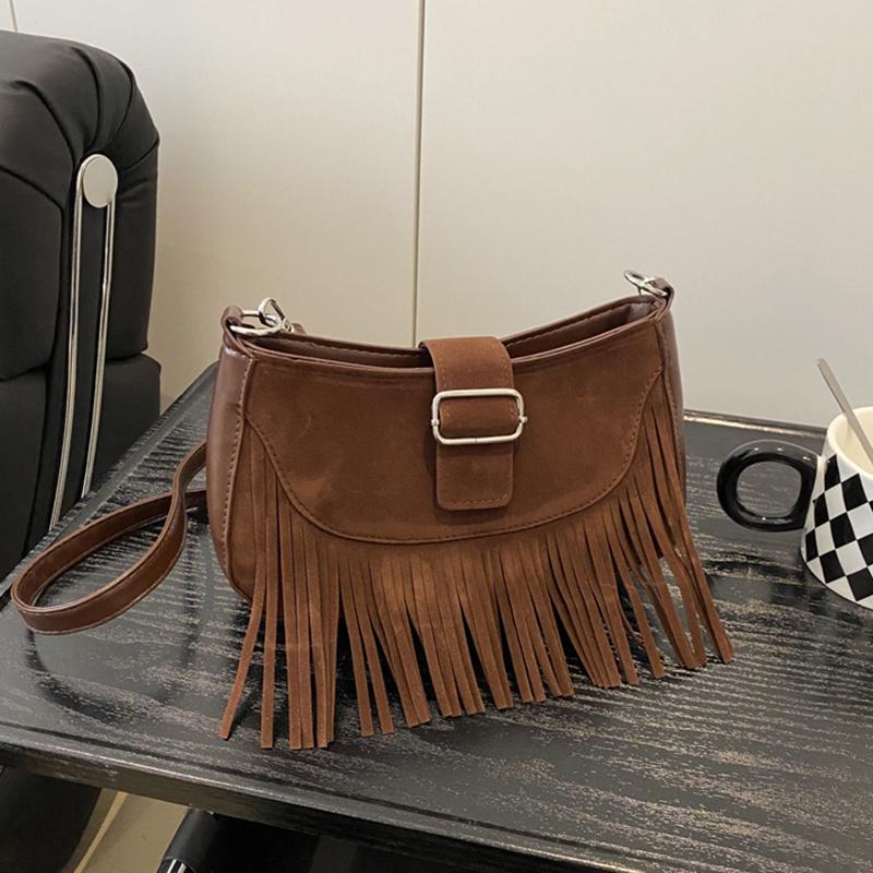 Винтажные сумки кроссбоди с кисточками для женского подарка, повседневная сумка через плечо с бахромой на регулируемом ремешке для ежедневного использования/досуга, отпуска CLE