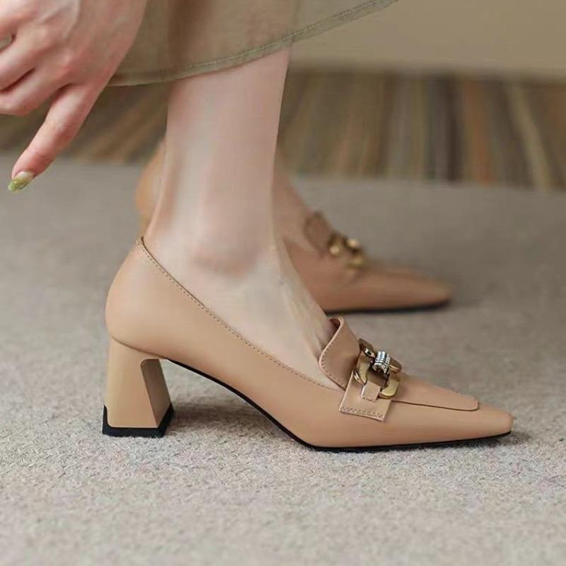 Кожаные туфли-лодочки на высоком каблуке, женские, весна-осень, новые, на толстом каблуке, с квадратным носком, рабочие туфли, универсальные лоферы, повседневная обувь
