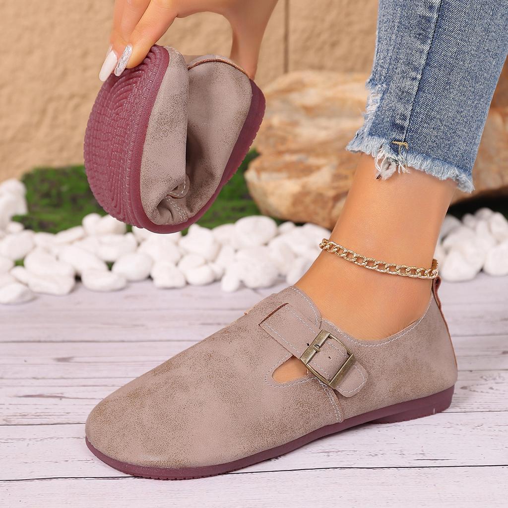 Ретро туфли-лоферы на плоской подошве с ремешком и пряжкой, женские новые ленивые лоферы на одном педале, туфли Doudou 2025 — купить товар онлайн с бесплатной доставкой по всему миру!