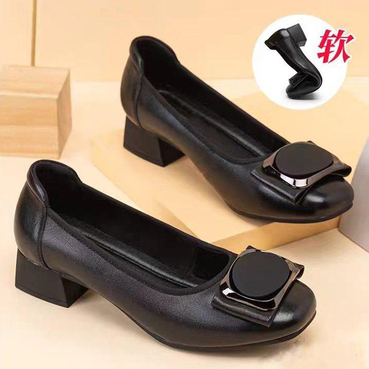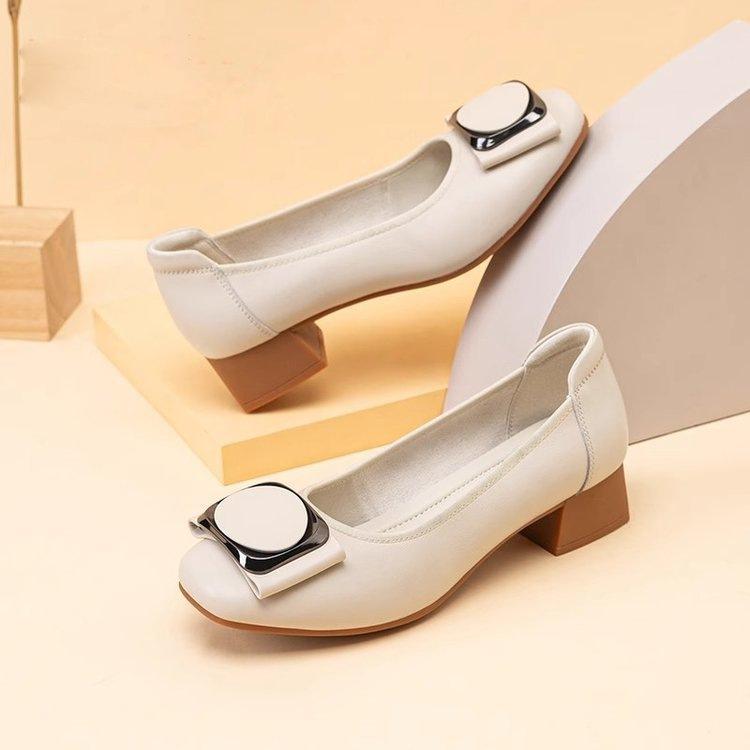 Осенние туфли на среднем каблуке с мелким вырезом, новые туфли из мягкой кожи на толстом каблуке, одинарные туфли на мягкой подошве, удобные женские туфли из маленькой кожи