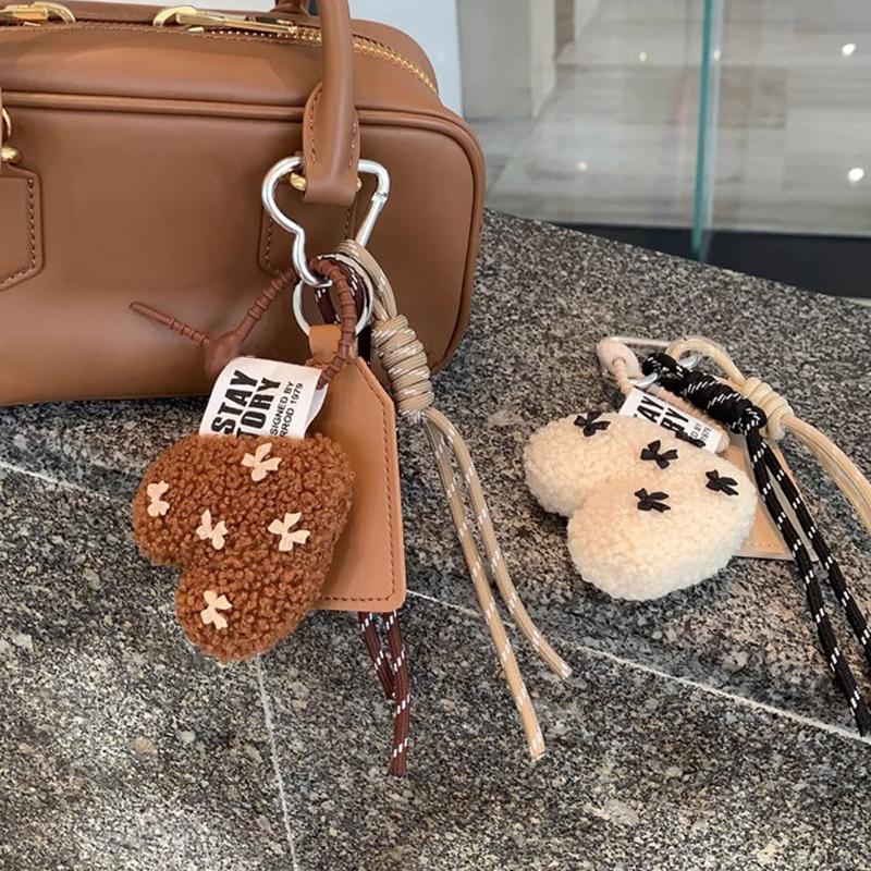 Новый мультяшный кулон в виде банта и сердца для женщин, парный, искусственная овечья шерсть, подвеска для сумки, подарок, украшение, аксессуары CLE