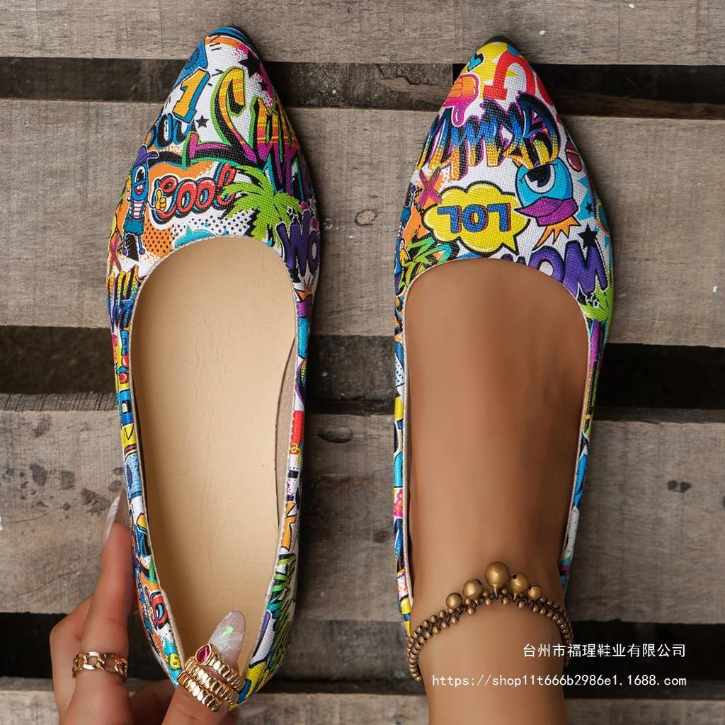 2025 весна и осень новый европейский и американский модный принт внешняя торговля большой размер на плоской подошве одинарные туфли с острым носком одинарные туфли на один педаль женские