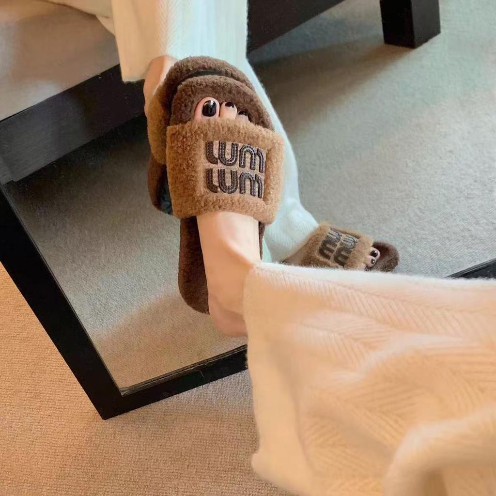 Шерстяная версия~ модная верхняя одежда miu wind на плоской подошве верхняя одежда одно слово с плюшевыми пушистыми тапочками осень и зима пушистая обувь