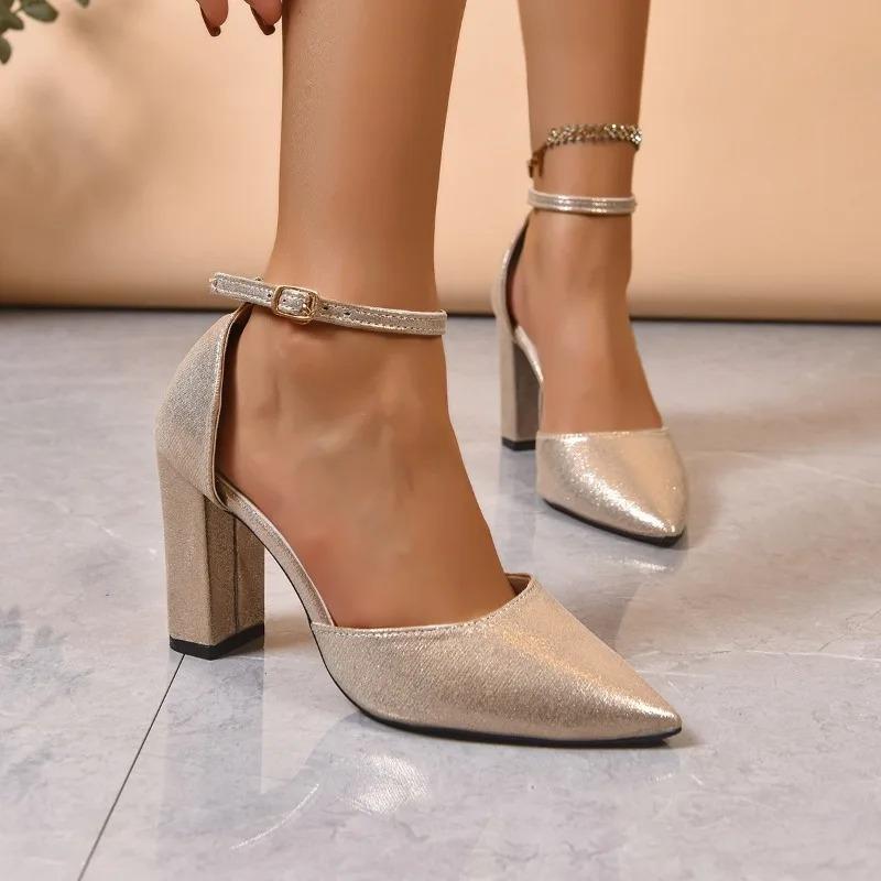 Босоножки Баотоу Осень Новые Острый носок Неглубокий вырез Один ремешок Противоскользящие Износостойкие Высокий каблук