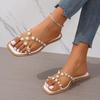2025 new fashion casual large size pearl toe solid color flat casual slippers fashion beach women's shoes