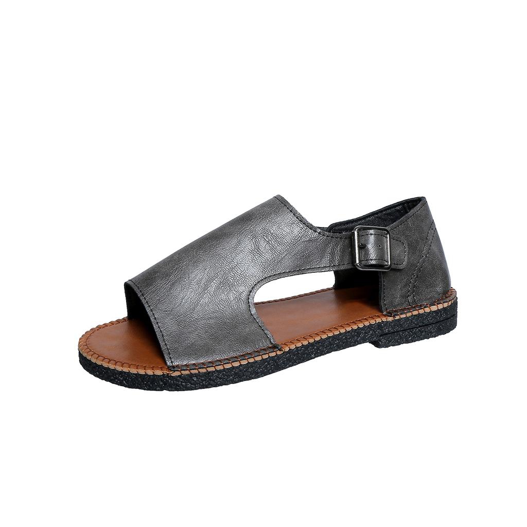 2025 Новые Летние Женские Повседневные Пляжные Сандалии Винтажные Сандалии-Гладиаторы с Открытым Носком Сандалии на Ремешке с Пряжкой Модная и Универсальная Обувь