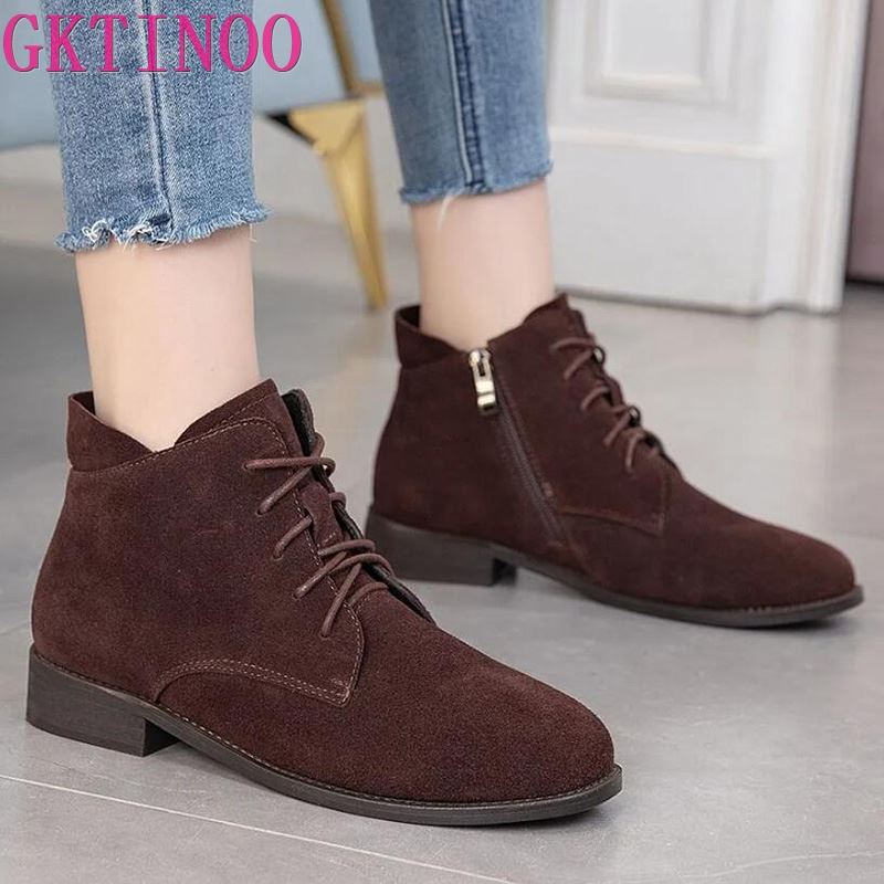 GKTINOO Women Chelsea Boots 2025 Autumn Winter New Genuine Leather Casual Shoes Women Cow Suede Lace-up Ankle Boots
