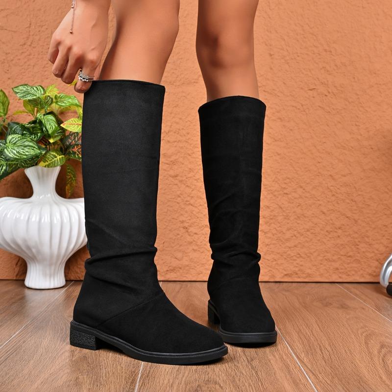 Зимние замшевые удобные элегантные ботинки для женщин модные новые с круглым носком сексуальные на толстом каблуке повседневные высококачественные ботфорты