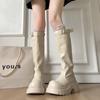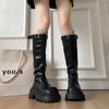 Женские высокие сапоги Женские Нескользящие Водонепроницаемые Зимние На молнии из ПУ кожи Сапоги до колена Женские Массивные на платформе Длинные сапоги 511